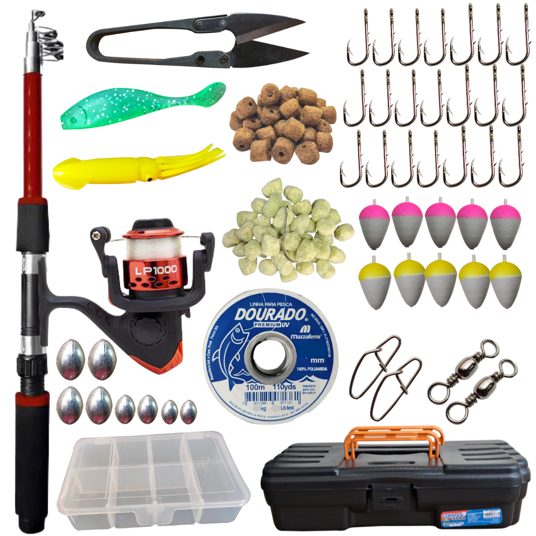 Kit de pesca completo; tralha de pesca completo; conjunto de pesca; kit de pescaria completo; itens de pesca; item de pescaria; anzol de pesca; anzol de aço carbono; caixa de anzol; estojo com anzol; maleta com anzol; maleta completa de pesca; caixa de pesca completa; chumbo de pesca; chumbada de pesca; peso de pesca; organizador de pesca; maleta organizadora de pesca; boais lambari; boias de isopor para pesca; boias coloridas de pesca; snap de pesca; girador de linha de pesca, suporte para chumbada; destorcedor de linha; cortador de linha; tesourinha de pesca; tesora de pesca; cortador de isca; massinha de pesca; macarrãozinho de pesca; massinha cozida para pesca; massa de pesca; massa de epscapara pacu; massa de pesca para piau; massa de pesca para lambari; macarrãozinho para lambari; isca de silicone para pesca; isca de pesca silicone; isca soft para pesca; isca artificial de silicone; isca artificial para tucunare; kit de pesca infantil; kit de pesca para iniciante; kit de pesca para começar a pescar; kit de pesca barato.